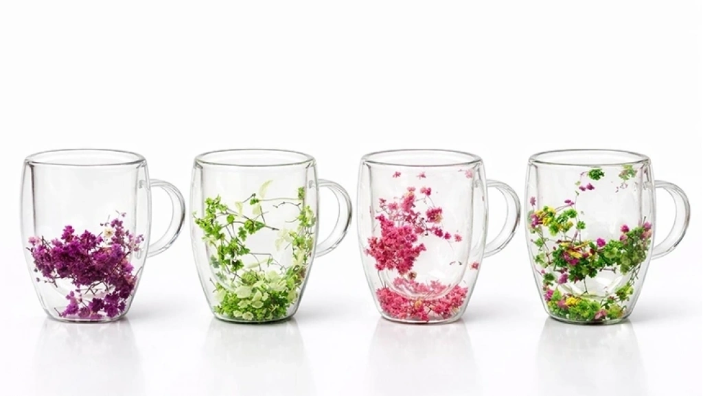 Çift Camlı Çiçekli Kupa Bardak Alk4468