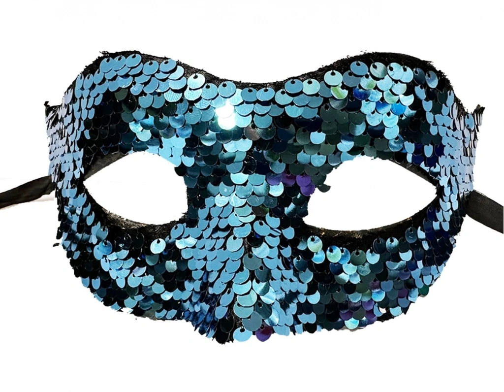 Mavi Renk Payetli Pullu Parti Maskesi Balo Venedik