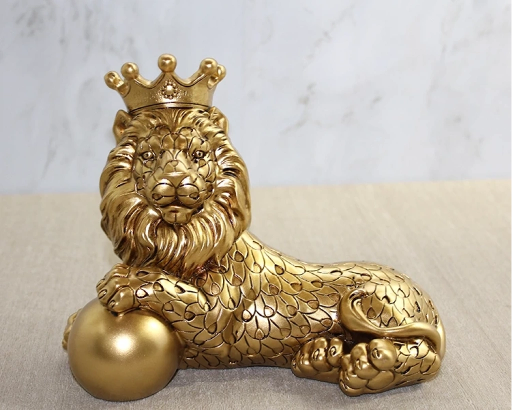 Polyester Dekoratif Taçlı Aslan Figürü Alk2576